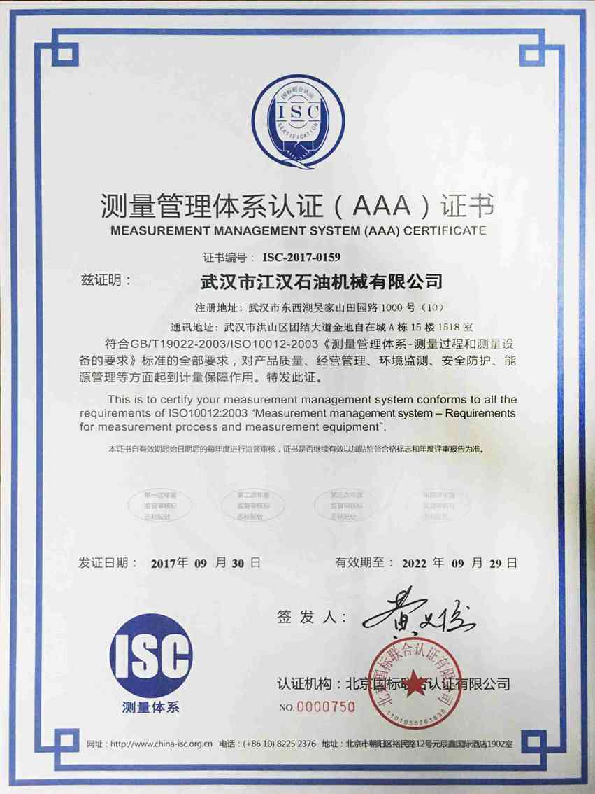 測量管理體系證書